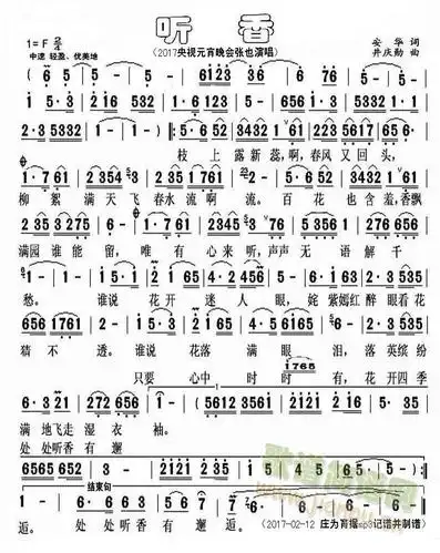 听香(2017央视元宵晚会演唱版) 张也 歌谱简谱网