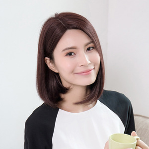 真发整顶假发套女短直偏分内扣波波头自然蓬松梨花头手织中分发型