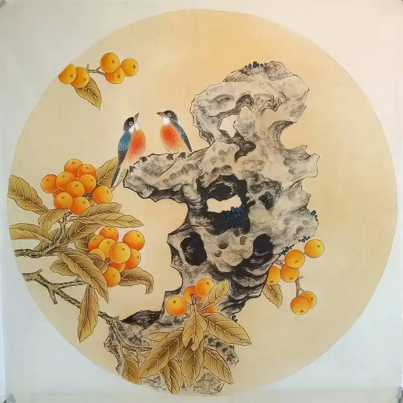 牡丹画家精品推荐 孙灏轩工笔花鸟画斗方画《玉堂富贵》