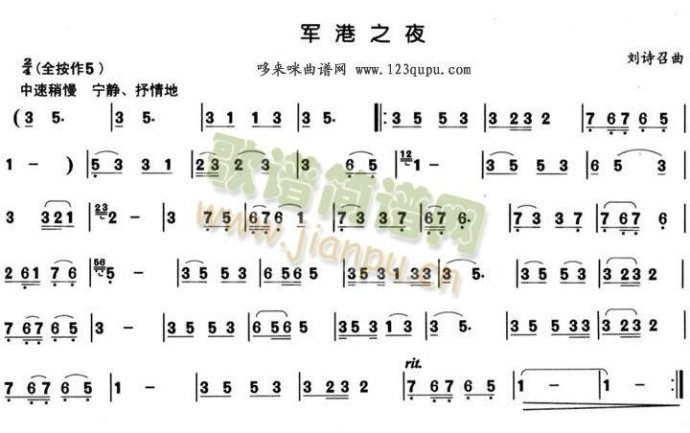军港之夜(葫芦丝旋律谱)_简谱_搜谱网