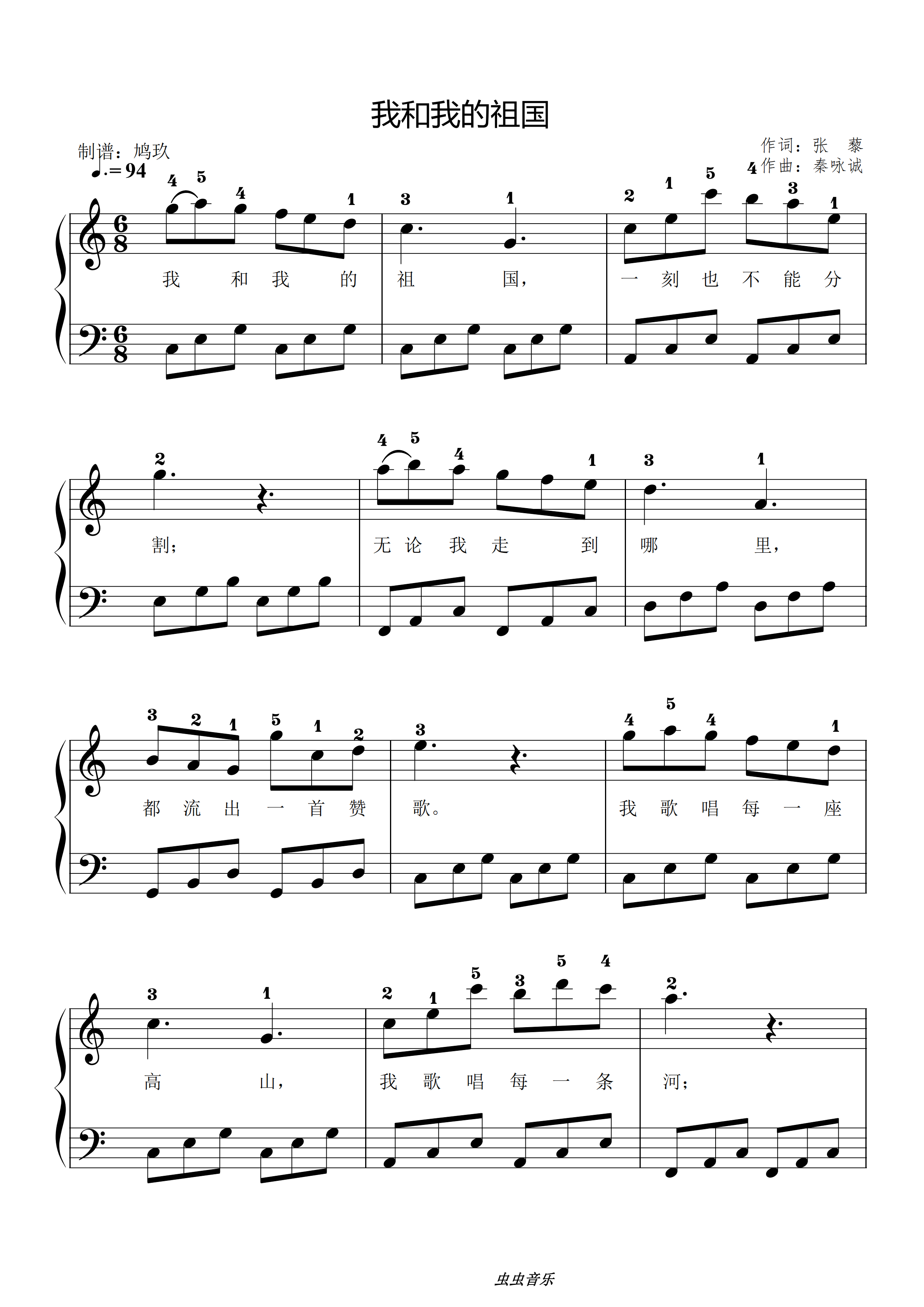 我和我的祖国-c调简单版钢琴谱-虫虫钢琴