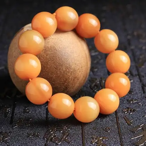 正宗西藏金黄色牛角佛珠手串 时尚民族风搭配金丝牦牛角男士手链