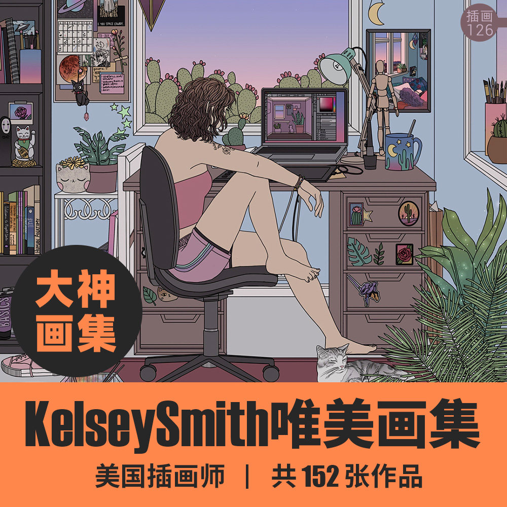 美国插画师kelseysmith作品集素材手绘插画线描风格生活场景人物