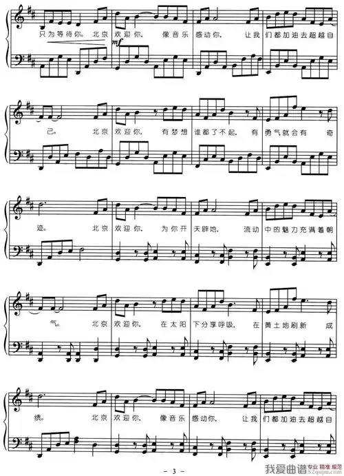 [北京欢迎你歌词完整版]北京欢迎你钢琴谱及歌词