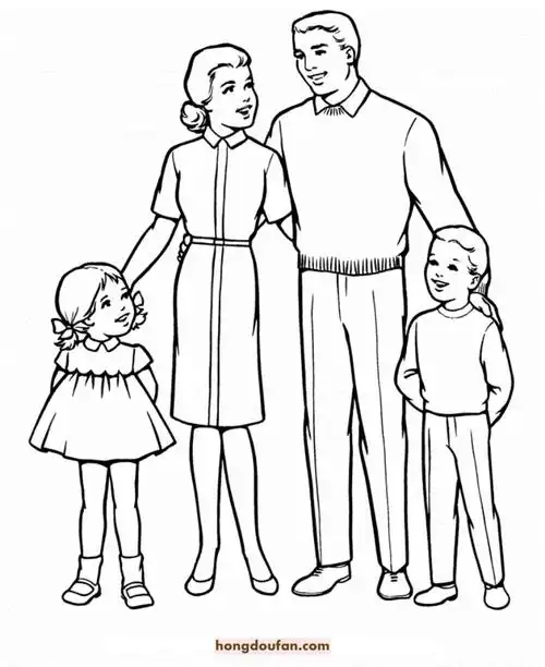 爸爸妈妈在一起我爱我的一家人卡通涂色就不会-红豆饭小学生简笔画