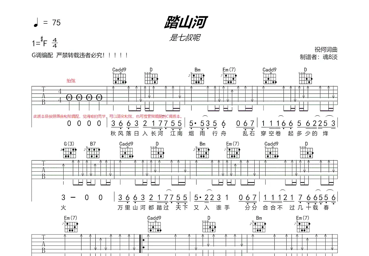 踏山河简谱是七叔呢抖音热门歌曲