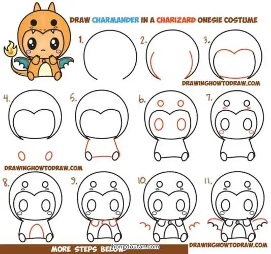 一步一步画卡通宠物小精灵里面的喷火龙口袋宝贝简笔画大全