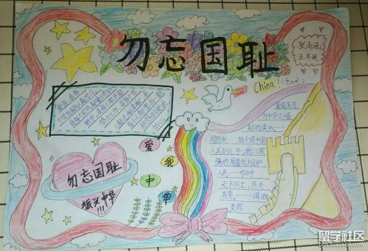 勿忘国耻梦圆中华主题手抄报