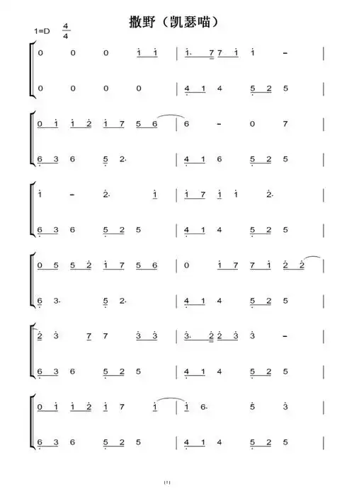 撒野凯瑟喵原声完整版钢琴双手简谱钢琴谱钢琴简谱