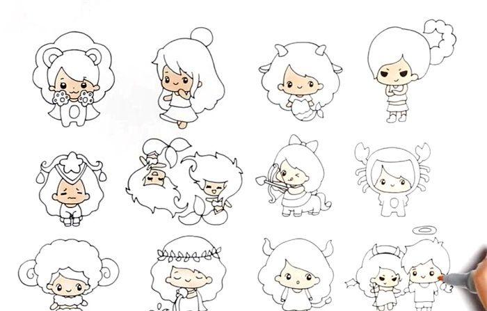 十二星座简笔画 十二星座萌系画法 - 抖音