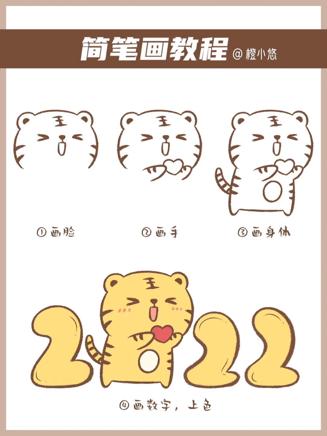 11虎年简笔画| 简单可爱的小老虎教程17 恬花花简笔画小课堂第11期