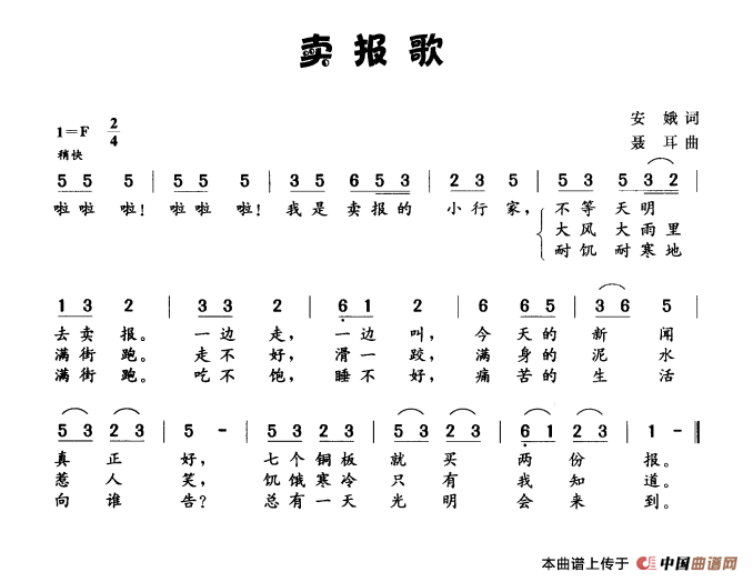 卖报歌 歌手:未知 分类:流行 格式:简谱