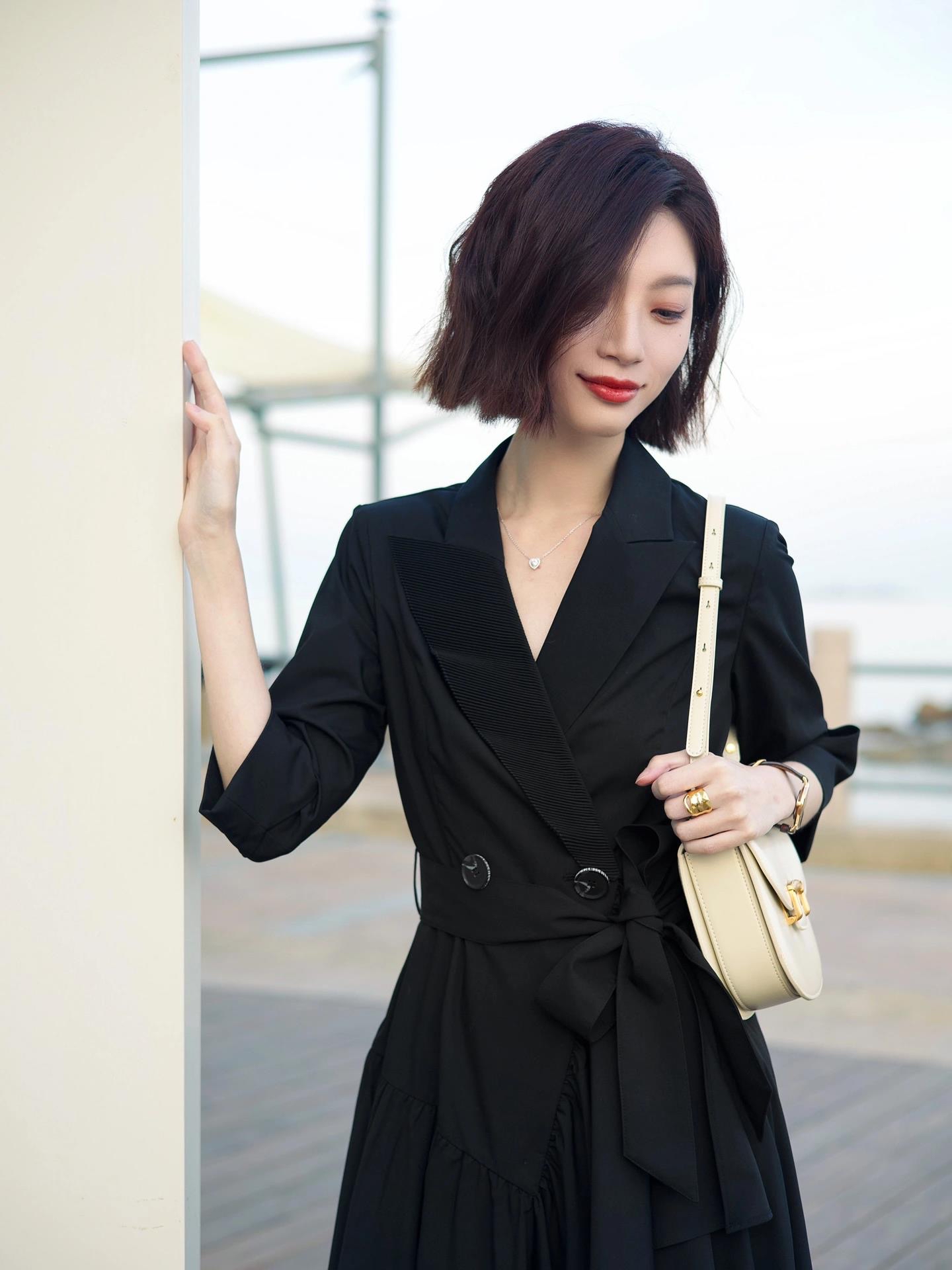 42岁宋佳西装搭配短裤秀大长腿,直接坐在观光车上凹造型_粉色_衬衫