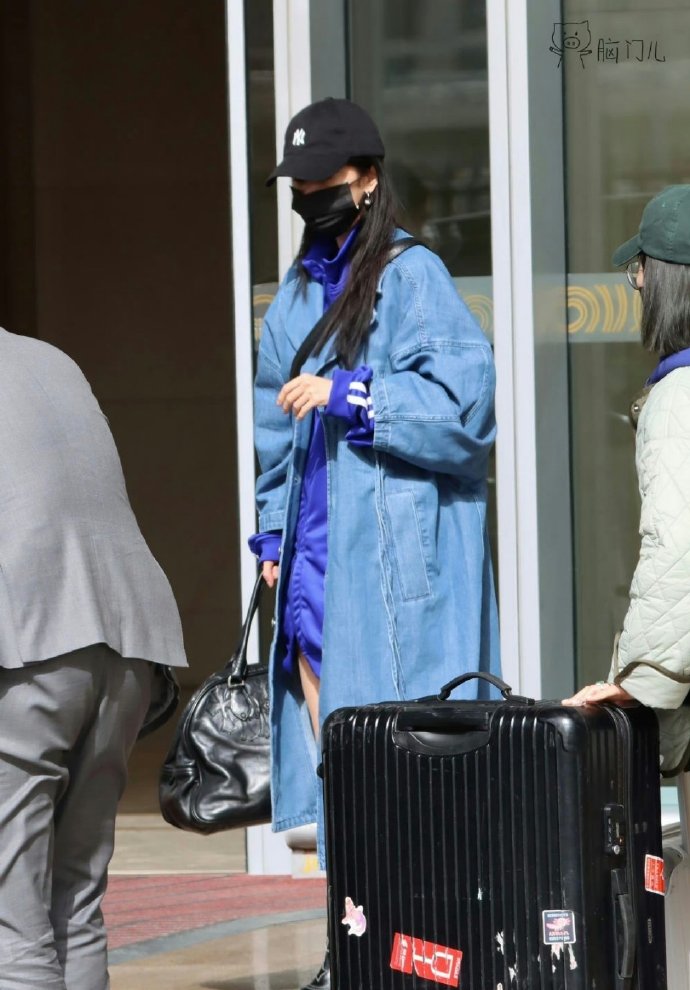 杨幂北京机场路透##杨幂牛仔风衣造型
