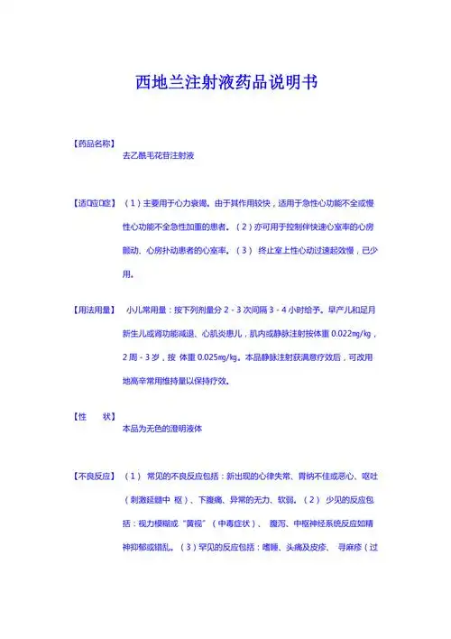 西地兰注射液药品说明书
