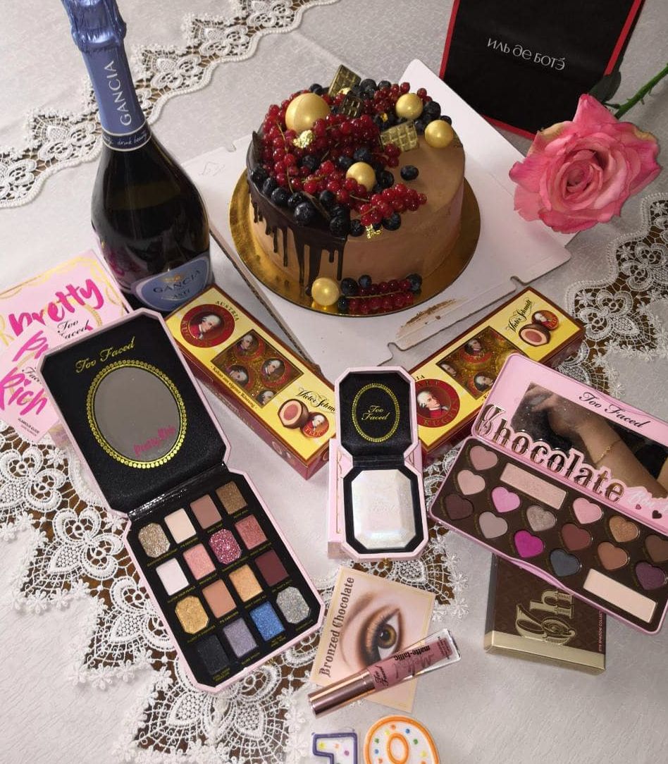 化妆品摆满桌子的照片
