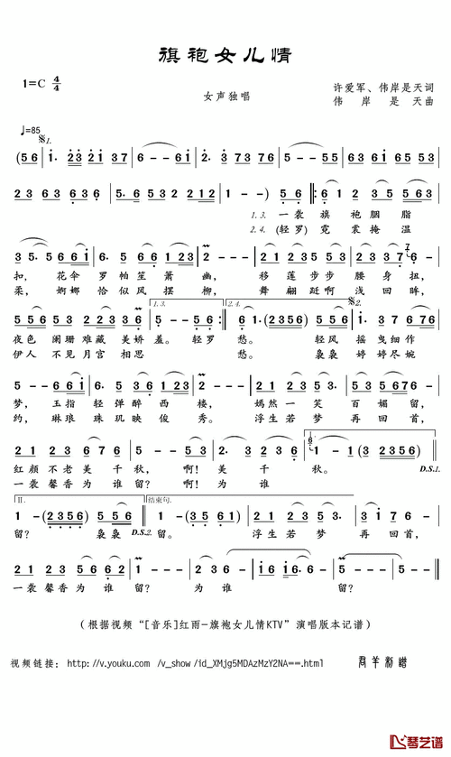 旗袍女儿情_简谱_搜谱网