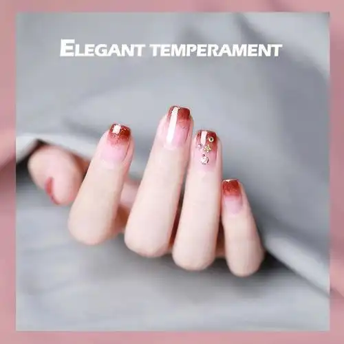 美甲亮晶晶渐变长指甲美甲简单干净底色一层