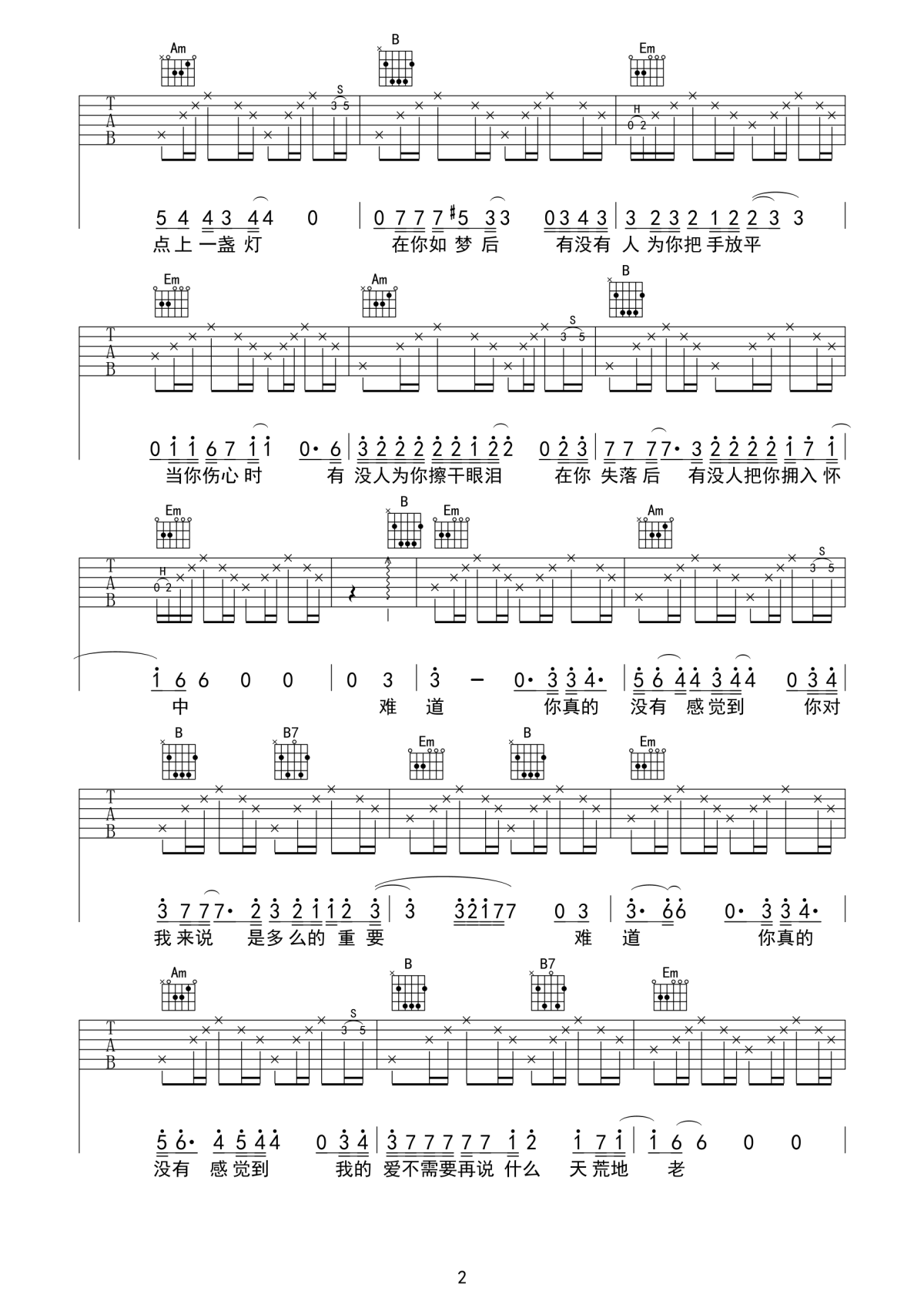 安来宁《难得》吉他谱_g调_弹唱六线谱_高清版