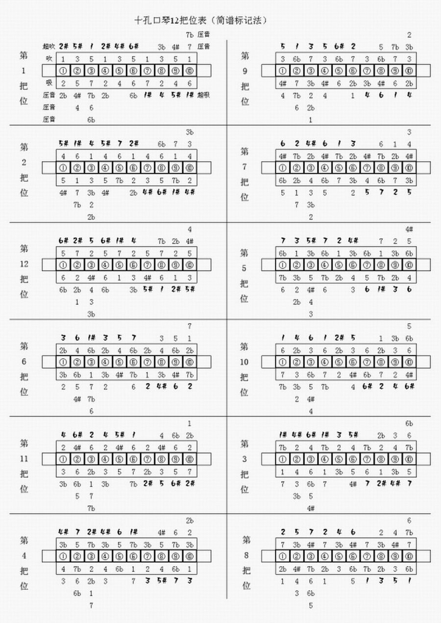 初探10孔布鲁斯口琴从图一中可以看出一支10孔的口琴居然能吹吸出30个