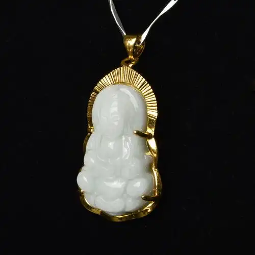吊坠 纯天然正品玉石男女式翡翠a货金镶玉观音吊坠干足金 金镶玉观音