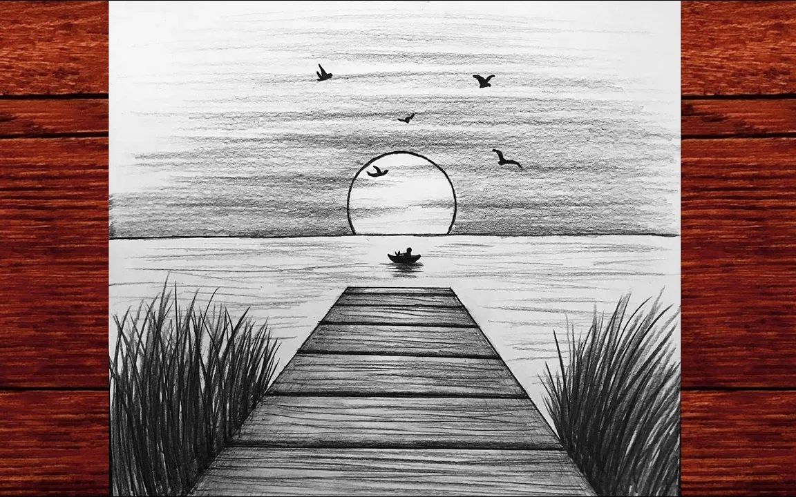 一学就会的素描画【初升的太阳】简单又好看的风景画