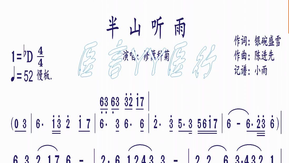 《半山听雨》bd 调,演唱曲,动态乐谱