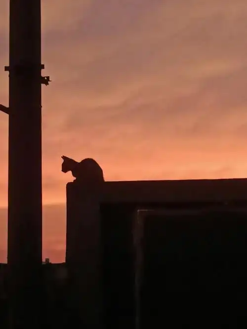 图片 夕阳下的猫 唯美的那种 希望是 夕阳下 猫咪蹲坐在屋顶看海的