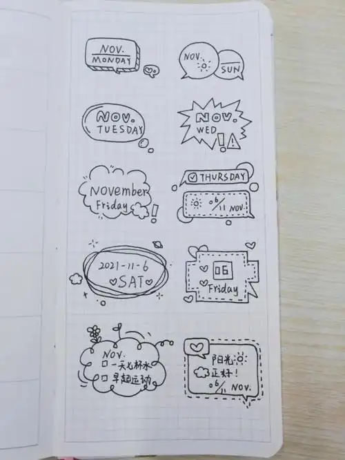 简笔画一组可爱简笔画手账本排版